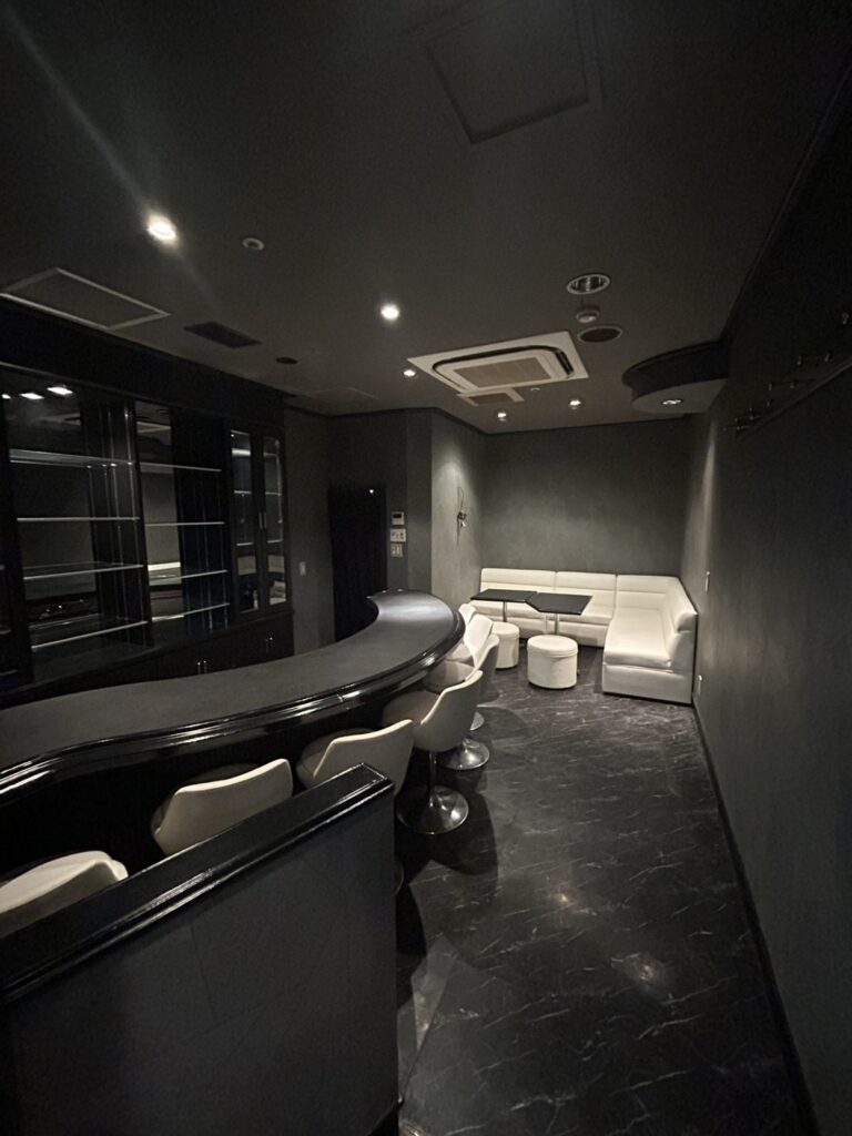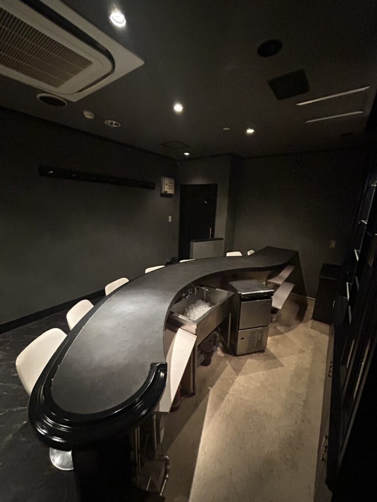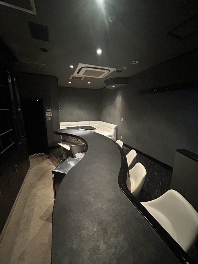 扉を開けると、ゆるやかな曲線を描く黒いカウンターが目に飛び込んでくる。